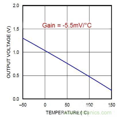 圖4:LMT84輸出電壓與溫度之間的關(guān)系圖