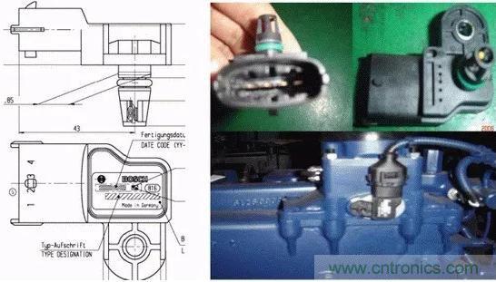 原理:傳感器皮膜上的傳感器元件將高壓管道內的壓力變化轉化成電壓信號輸送到ECU。一旦損壞,壓力控制閥就通過應急(備份)功能,按設定值被“盲”觸發。