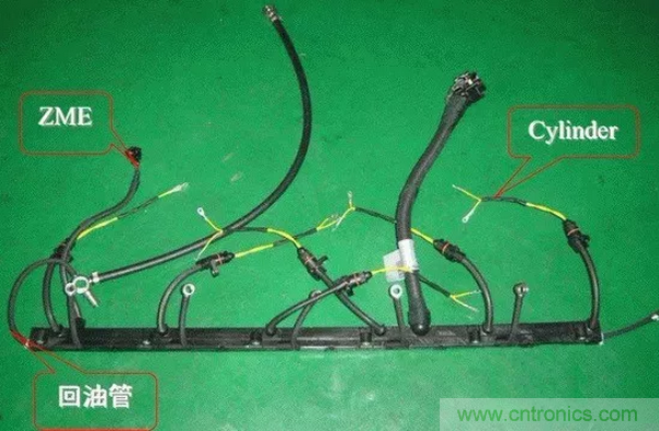 噴油器線束包括發動機6個缸的噴油器(injector)以及控制高壓油泵的油量計量單元ZME(metering unit)。