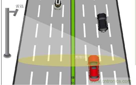 檢測器面對高速公路車道行駛方向布設,稱為前視檢測。通常將一條車道劃分為一個檢測區,配置一臺檢測器。檢測車速時,需要在檢測區內沿行駛方向細分成幾個窄區,并設定窄區間的距離長度;對通過窄區的車輛計時,就可測出車速及其他交通參數。前視可延長縱向區(車道)監測長度,以提供更精確的數據。檢測區及窄區的劃分均由軟件設定,修改軟件可重新設定。因此,可應用于高速公路監測,城市交通檢測,城市交通信號控制和區域交通事件報警等不同場合。檢測器沿車道橫向布置,稱為側視檢測,可同時得出個車道的交通流狀態變量的實時數據。在城市道路十字路口,可以采用多個探頭對四個道口的車輛檢測和處理,對監視和控制路口交通效果良好。