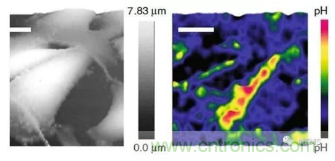 目前,最常用的pH探針基于微電極,與細胞外pH研究中pH值波動范圍相比,微電極體積較大。替代方案包括基于分子熒光的變化,核磁共振成像以及正電子發(fā)射計算機斷層掃描。然而,熒光監(jiān)測易受背景噪音和光漂白的影響,其他技術(shù)的空間分辨率較差,并且由于其基于探針在組織內(nèi)的分布而難以定量。