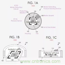蘋果公司的專利經常涉及傳感器技術,此次公布的新專利是一種具有檢測水分功能的壓力傳感器,封裝尺寸約數毫米。該款壓力傳感器集成了用于檢測水分的一個或多個電極,并在一些實施方案中,還采用了能夠使水分蒸發的一個或多個加熱元件。