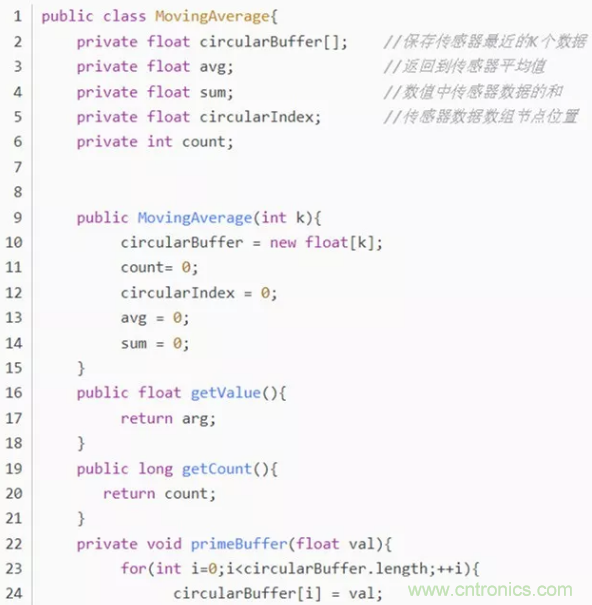 保留傳感器數據流中最近的K個數據,返回它們的平均值。其中,K表示平均“窗口”的大??;
